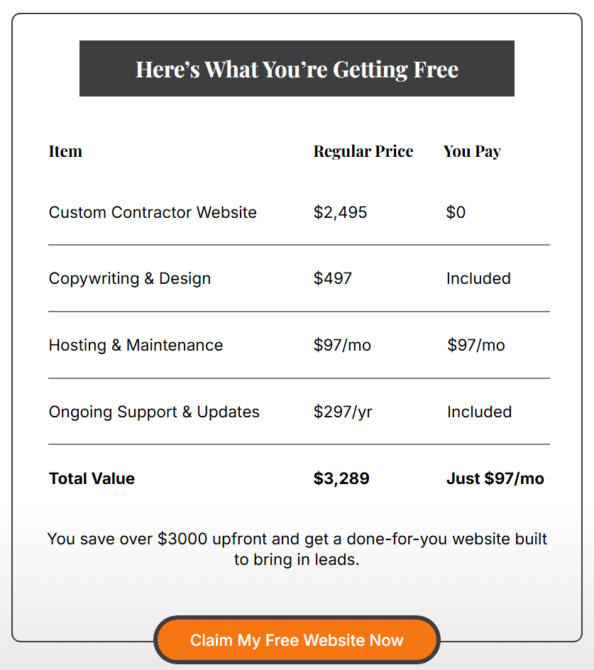 Because we know once your site’s live, you’ll love it — and hosting covers our cost. We also want to earn your trust and help you grow your business with our lead generation packages. That’s how we win long-term.